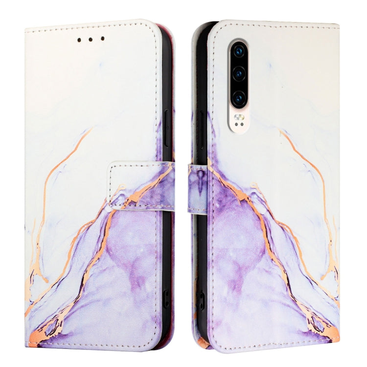 Funda de Cuero con Tapa para Huawei P30 Pt003 con Patrón de Mármol (Blanco Púrpura)