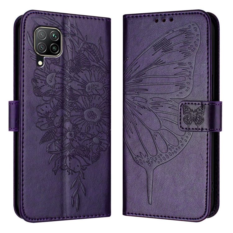 Funda de Cuero para Huawei P40 Lite 4G y Nova 6 Se con Mariposa en Relieve (Púrpura Oscuro)