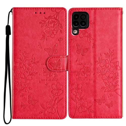 Funda para Huawei P40 Lite de Cuero con Relieve Flor de Amor y Mariposa (Rojo)