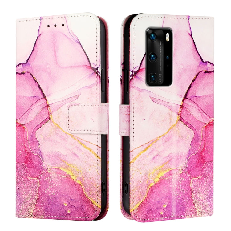 Funda de Cuero con Tapa para Huawei P40 Pro Pt003 con Patrón de Mármol (Rosa Púrpura Dorado)