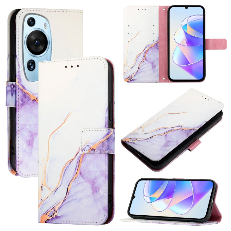 Funda de Cuero con Tapa para Huawei P60 Art Pt003 con Patrón de Mármol (Ls006 Blanco Púrpura)