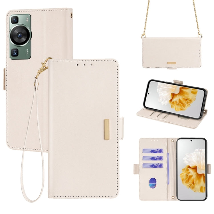 Funda de Cuero para Huawei P60 y P60 Pro con Cadena Cruzada (Blanco)