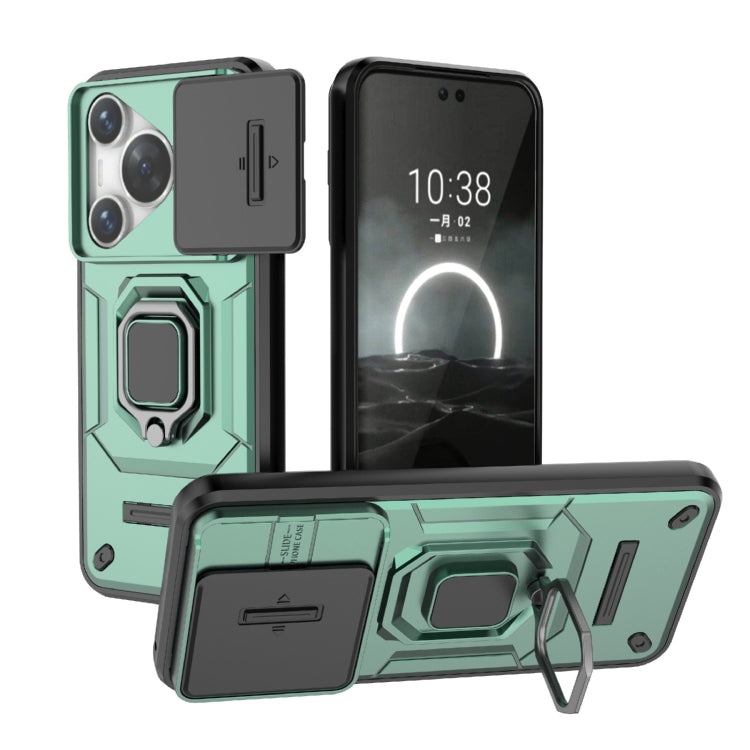 Funda para Huawei P70 5G Sliding Camshield TPU + PC a Prueba de Golpes con Soporte (Verde)