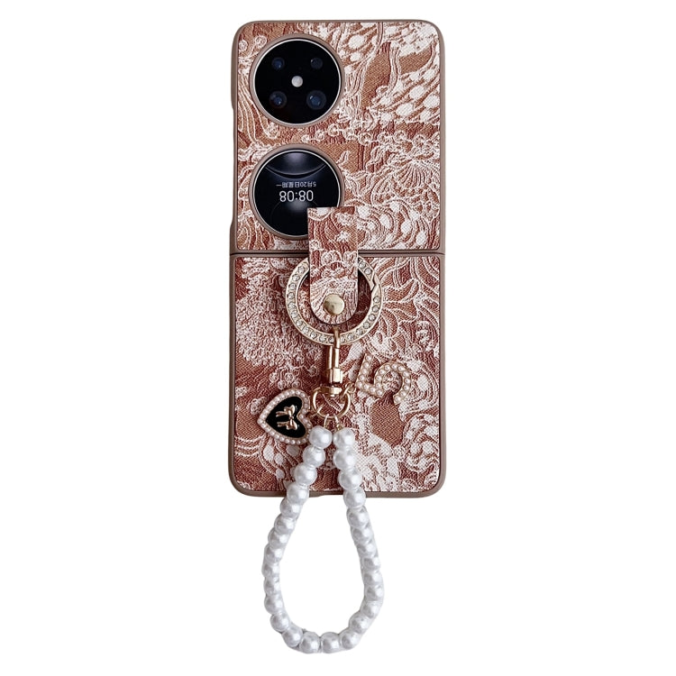 Estuche para Huawei Pocket 2 cobertura total con bordado y cadena de cuentas (Naranja)