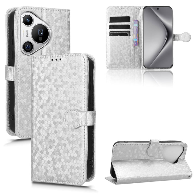 Funda de Cuero para Huawei Pura 70 con Textura de Punto de Panal (Plateado)