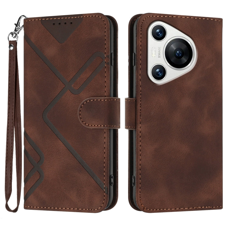 Funda de Cuero para Huawei Pura 70 con Sensación de Piel y Patrón de Líneas (Café)