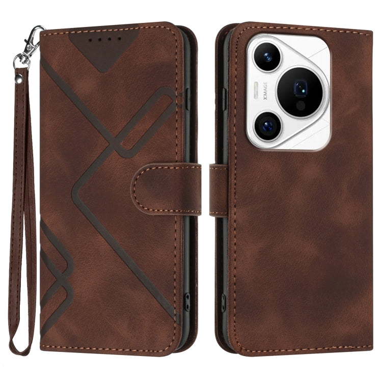 Funda de Cuero para Huawei Pura 70 Pro y 70 Pro+ con Patrón de Líneas y Sensación de Piel (Café)