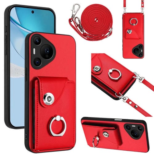 - 1x Funda para Huawei Pura 70 Pro y 70 Pro+ con Soporte para anillo, Bolsa para Tarjeta y cordón largo (Rojo)