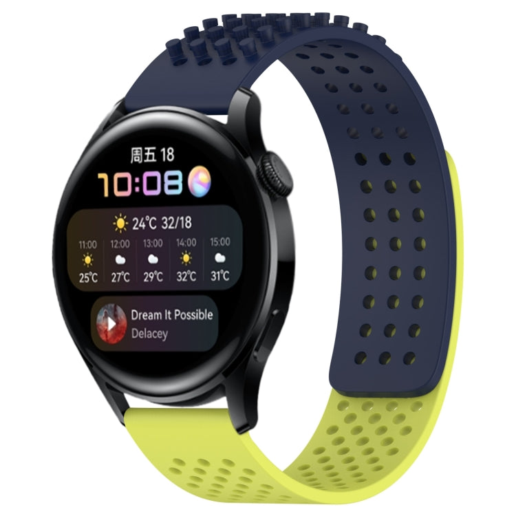 Correa de Silicona para Huawei Watch 3 con Puntos 3D Transpirables y Orificios de 22mm (Azul Medianoche + Verde Lima)