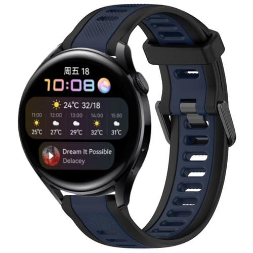 Correa de Silicona para Huawei Watch 3 22mm Texturizada Dos Colores (Azul Medianoche + Negro)