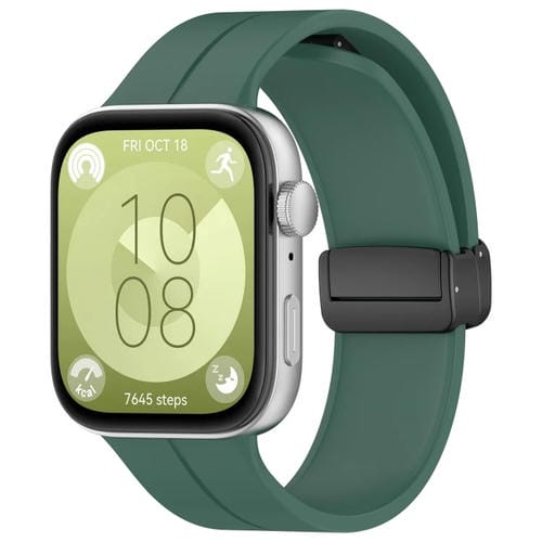 Correa de Silicona para Huawei Watch Fit3 con Hebilla Plegable Magnética (Verde Oscuro)