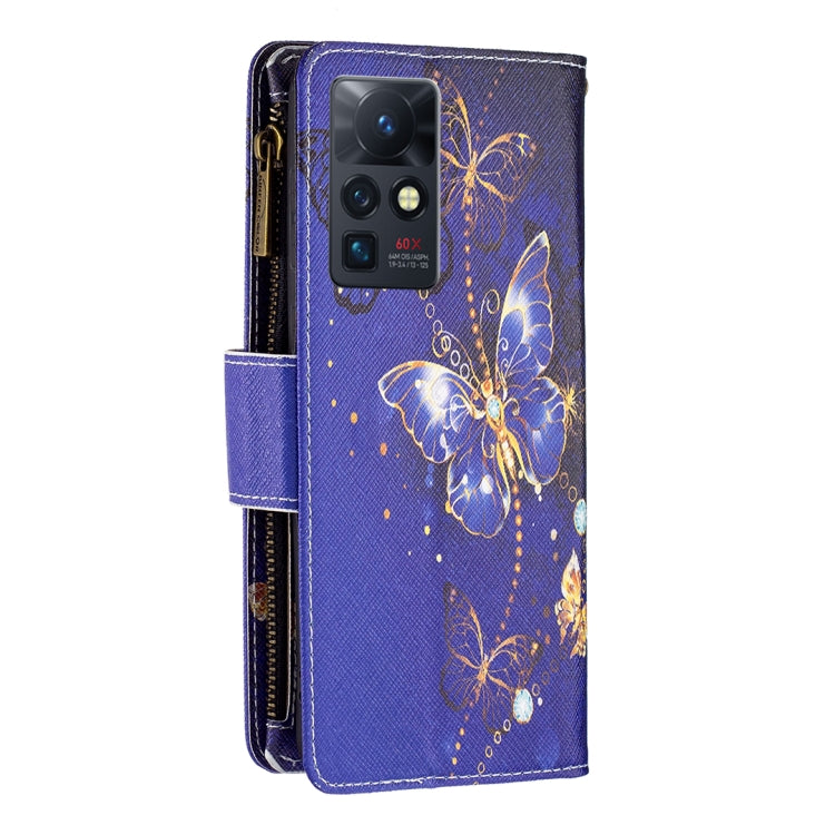 Para infinix cero x / x pro color de dibujo coloreado cremallera de la cremallera horizontal del teléfono de cuero (mariposa morada)
