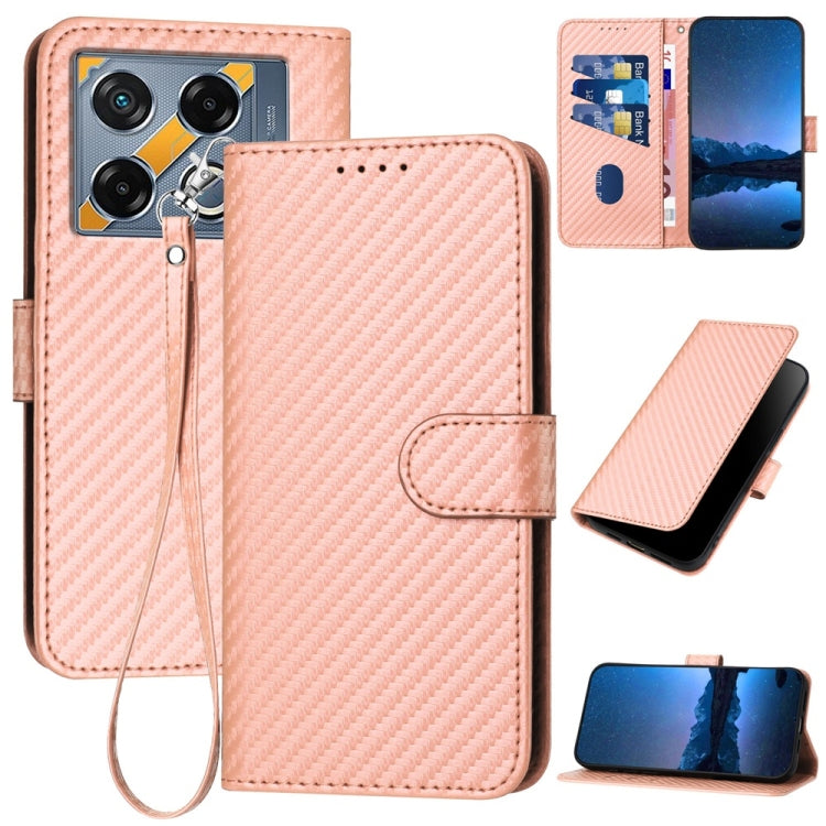 Funda de Cuero para Infinix Gt 20 Pro Yx0070 con Hebilla de Fibra de Carbono y Cordón (Rosa)