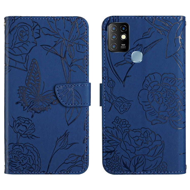 Funda de Cuero para Infinix Hot 10 Ht03 con Tapa en Relieve Skin Feel Butterfly (Azul)