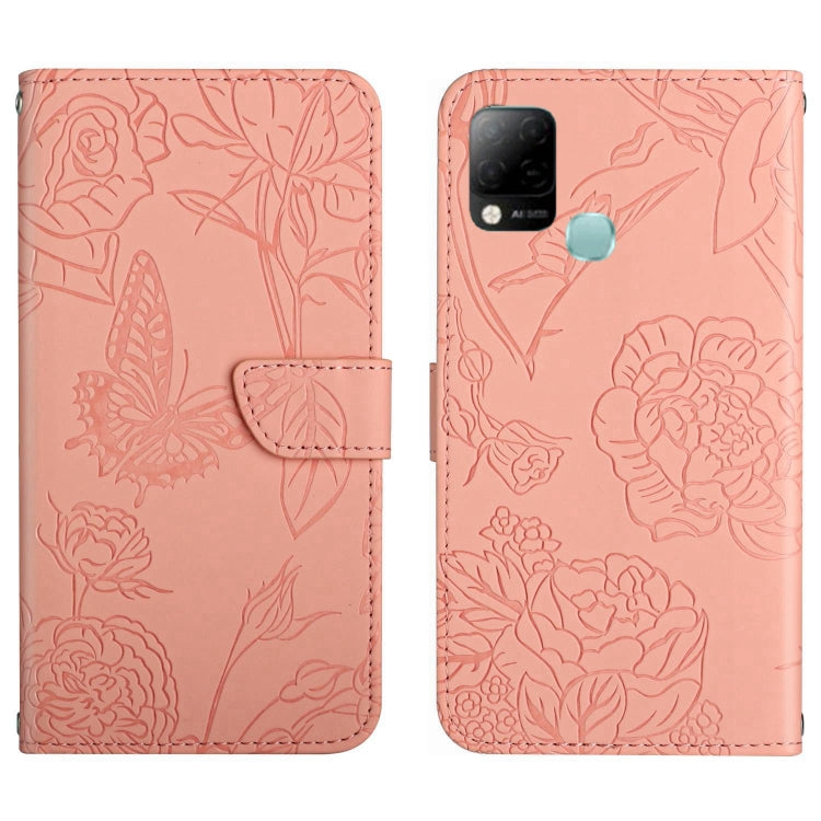 Funda de Cuero para Infinix Hot 10S/10T Ht03 con Tapa en Relieve y Diseño Butterfly (Rosa)