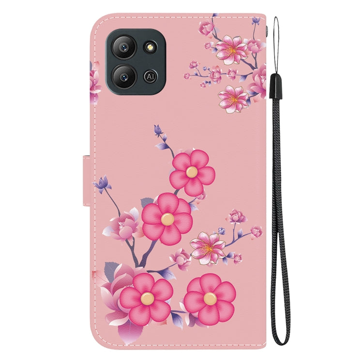 Estuche de Cuero para Infinix Hot 11 2022 con Dibujo Coloreado y Textura de Cristal (Flores de Cerezo)