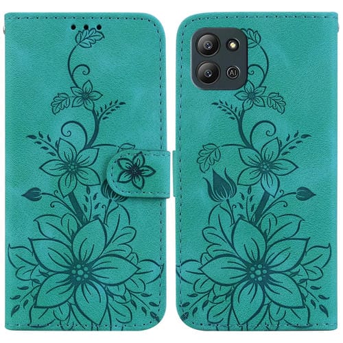 Funda de Cuero para Infinix Hot 11 2022 con Relieve de Lirio (Verde)