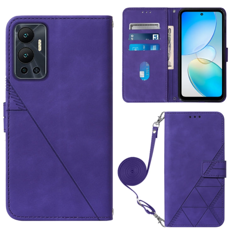 Funda de Cuero con Tapa En Relieve 3D para Infinix Hot 12 X6817 Crossbody (Púrpura)