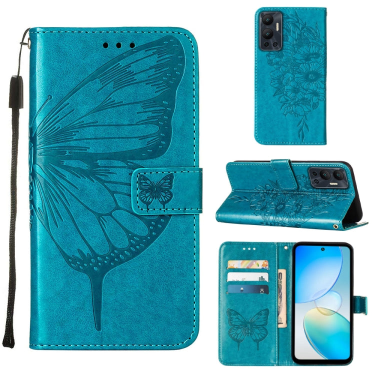 Funda de Cuero para Infinix Hot 12 X6817 con Tapa de Mariposa en Relieve (Azul)