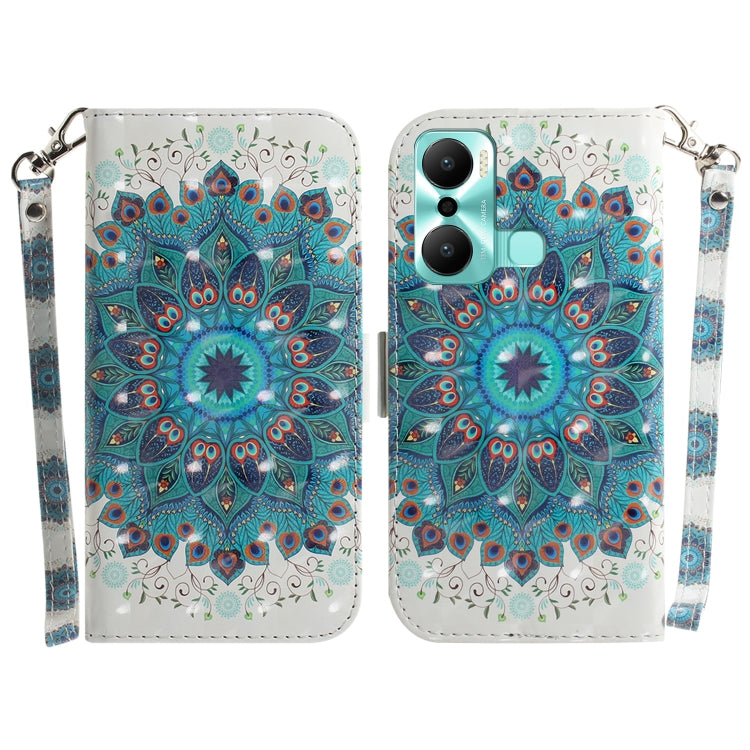Funda para Infinix Hot 20 Play con Tapa de Cuero y Patrón 3D Guirnalda de Pavo Real