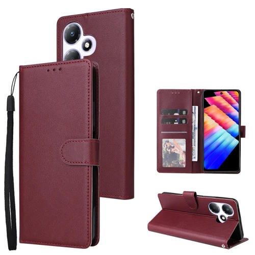 Estuche para Teléfono Infinix Hot 30 Play Cuero Multifuncional con 3 Ranuras para Tarjetas (Rojo Vino)