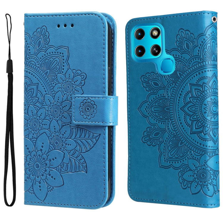 Funda para Infinix Inteligente 6 Flores de 7 Pétalas con Ruina de Cuero En Relieve (Azul)