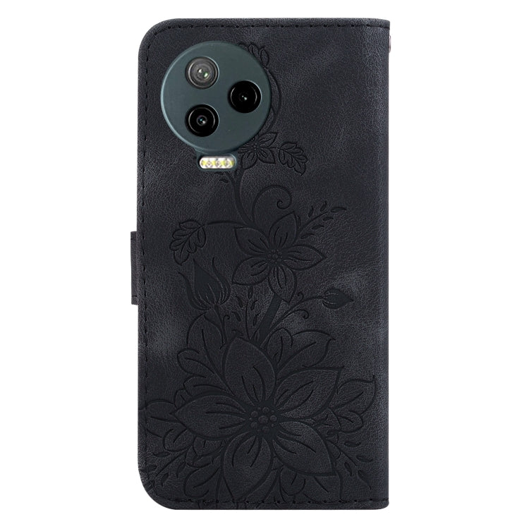 Estuche de Cuero para Infinix Note 12 Pro 4G y Note 12 (2023) con Relieve de Lirio (Negro)