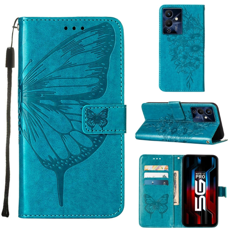 Estuche para Infinix Note 12 Pro 5G de Cuero con Tapa de Mariposa en Relieve (Azul)