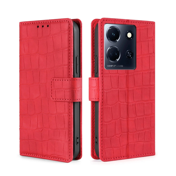 Funda de Cuero para Infinix Note 30 5G con Skin Feel Cocodrilo y Cierre Magnético (Rojo)