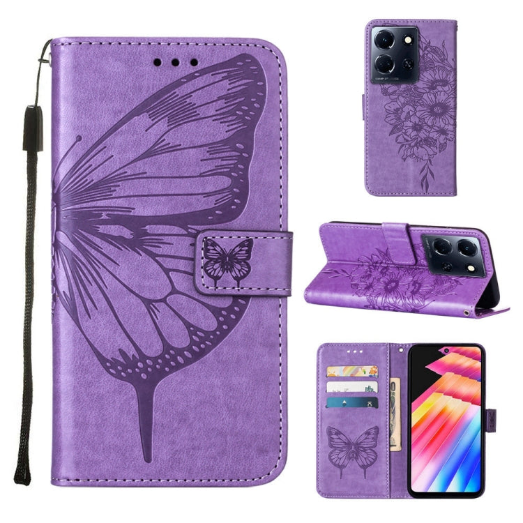 Estuche para Infinix Note 30 5G / X6711 de Cuero con Mariposa en Relieve (Púrpura Claro)