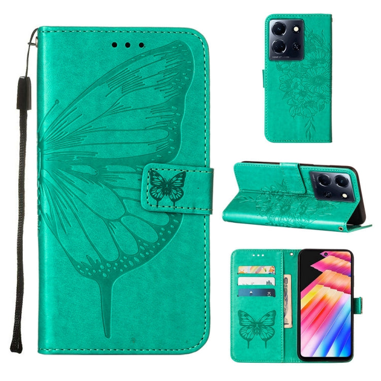 Estuche de Cuero para Infinix Note 30 5G X6711 con Mariposa en Relieve (Verde)