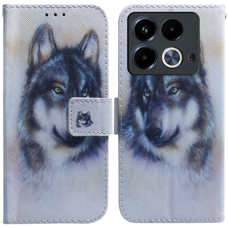 Funda de Cuero para Infinix Note 40 4G con Tapa y Dibujo Coloreado (Lobo Blanco)