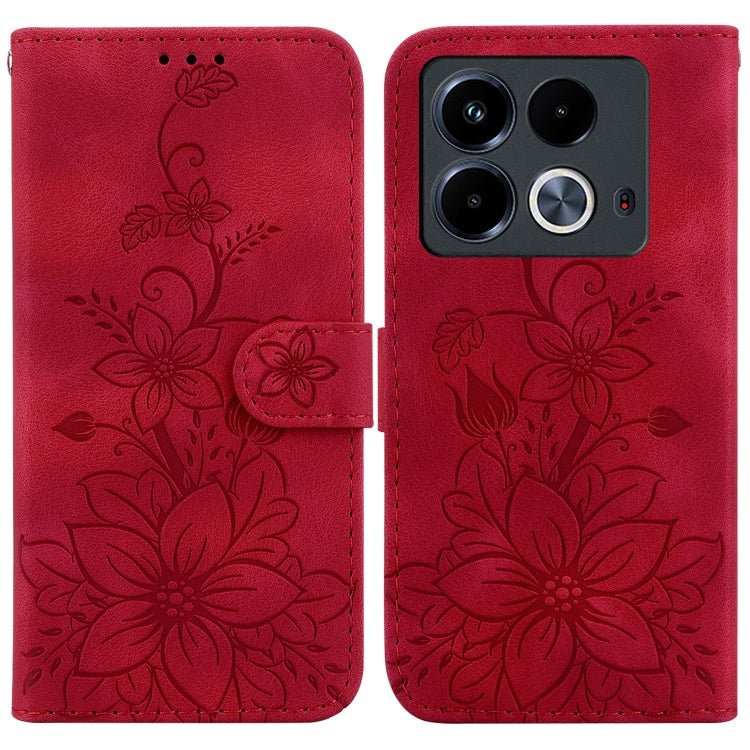 Funda de Cuero En Relieve para Infinix Note 40 4G Lily (Rojo)