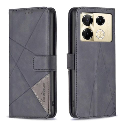 Funda para Infinix Note 40 Pro 4G / 5G y 40 Pro + 5G Cuero Textura Rombo Hebilla Magnética (Negro)