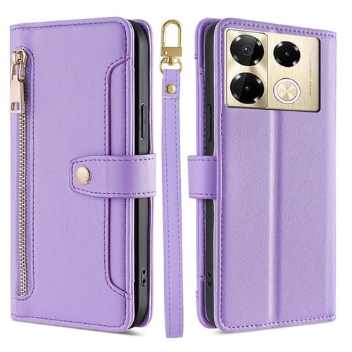 Funda de Cuero para Infinix Note 40 Pro 4G con Billetera, Cremallera y Textura de Oveja (Púrpura)