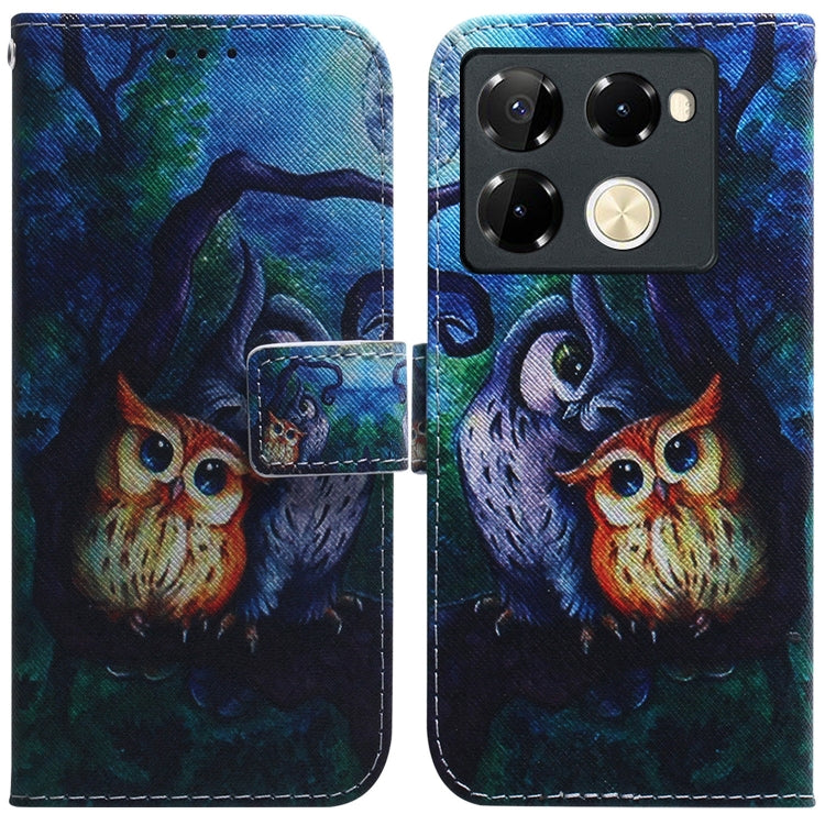 Funda de Cuero con Tapa para Infinix Note 40 Pro + 5G con Dibujo Búho de Pintura al Óleo
