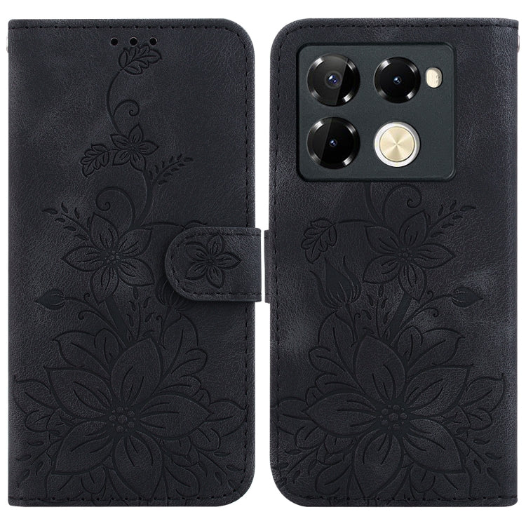Funda de Cuero para Infinix Note 40 Pro + 5G Lily en Relieve (Negro)