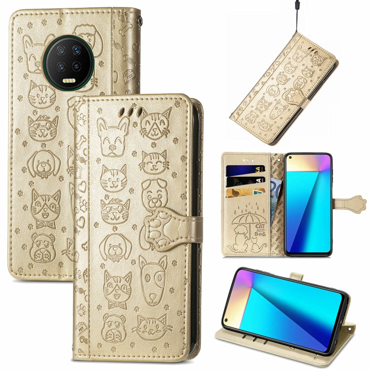 Estuche de Cuero para Infinix Note 7 con Soporte, Tragamonedas, Billetera y Cordón (Oro)
