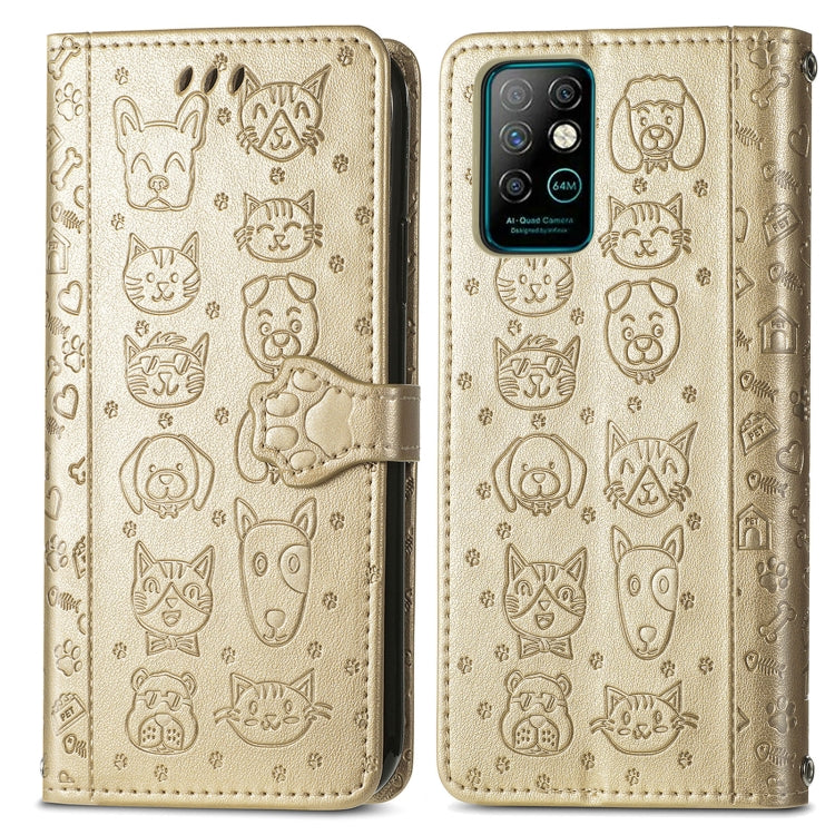 Funda de Cuero para Infinix Note 8 con Estampado de Gato y Perro, Soporte, Ranuras y Cordón (Oro)