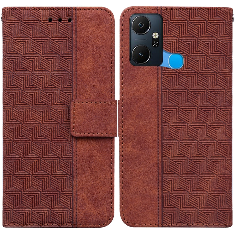 Estuche para Teléfono Infinix Smart 6 Plus Cuero con Tapa en Relieve Geométrico (Marrón)