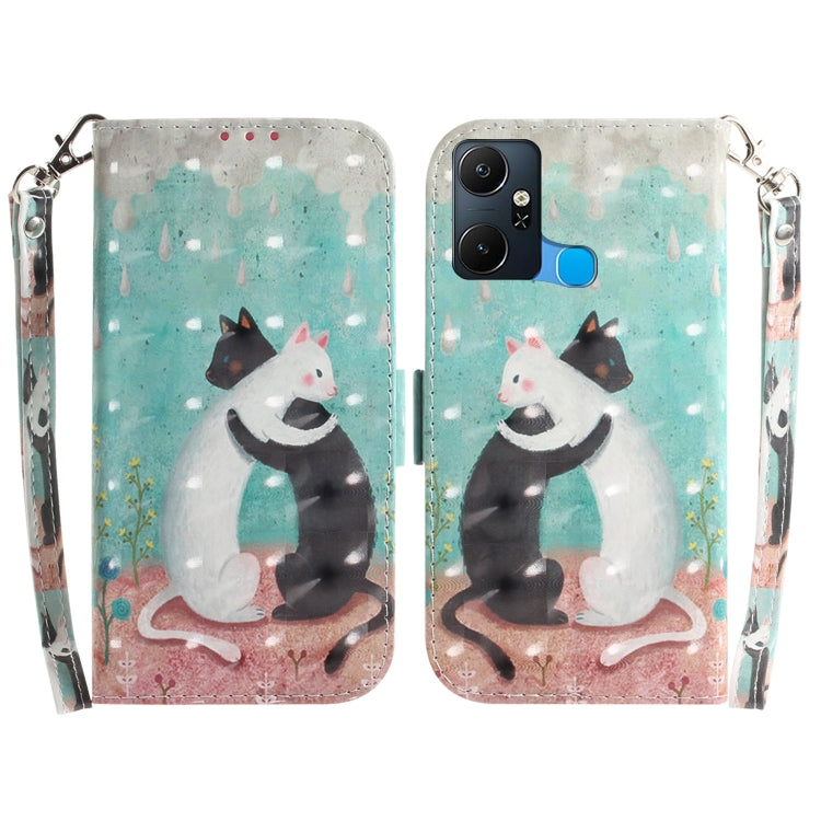 Estuche para Infinix Smart 6 Plus de Cuero con Tapa Horizontal y Diseño 3D (Gato Blanco y Negro)