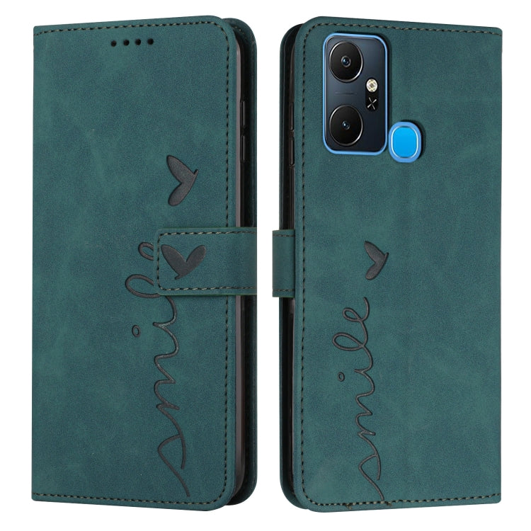 Funda de Cuero para Infinix Smart 6 Plus con Patrón Heart Skin Feel (Verde)