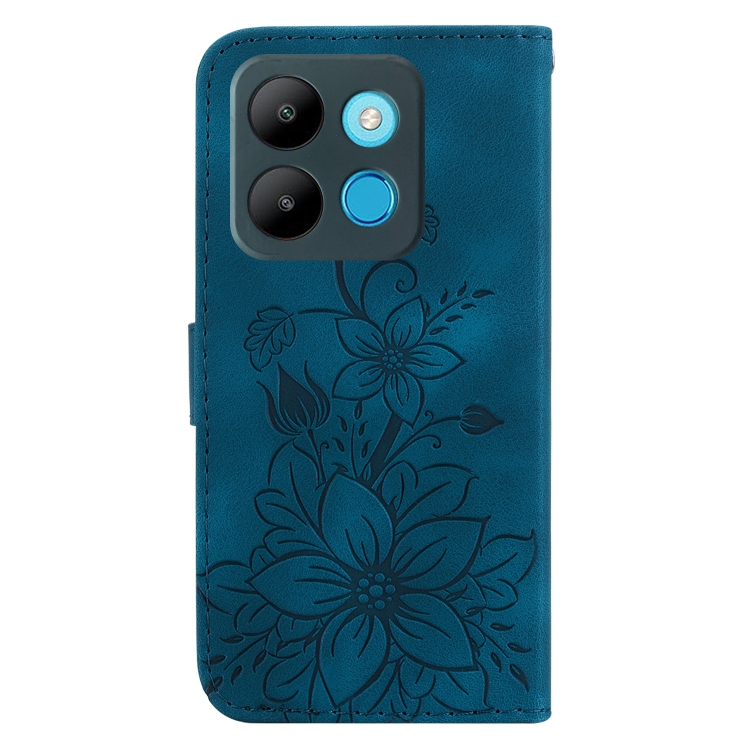 Funda para Infinix Smart 7 African / X6515 Lily de Cuero en Relieve (Azul Oscuro)