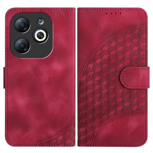 Funda de Cuero para Infinix Smart 8 YX0060 con Relieve y Cabeza de Elefante con Cordón (Rojo Rosa)