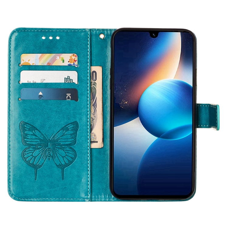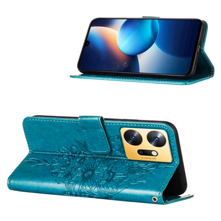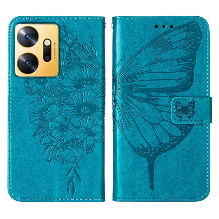 Estuche para Teléfono Infinix Zero 20 / X6821 Cuero con Mariposa en Relieve (Azul)