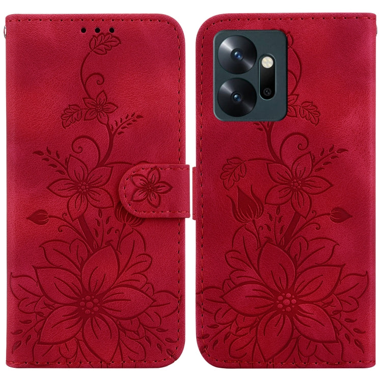 Funda para Teléfono Infinix Zero 20 X6821 de Cuero con Relieve Lily (Rojo)