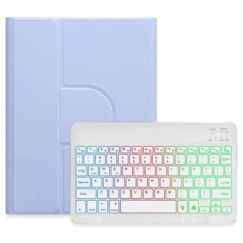 Pour iPad 10.2 2021/Air 2019, rétroéclairage tricolore, blanc, étui en cuir pour clavier Bluetooth rotatif à 360 degrés (violet clair)