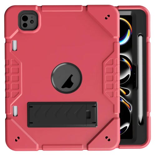 Funda híbrida de silicona para iPad Pro 11 (2024) con soporte de armadura (Rojo y negro)