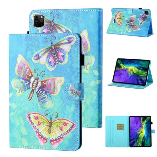 Pour iPad Pro 11 2024 Coutures colorées et étui pour tablette en cuir intelligent à motifs (papillons colorés)
