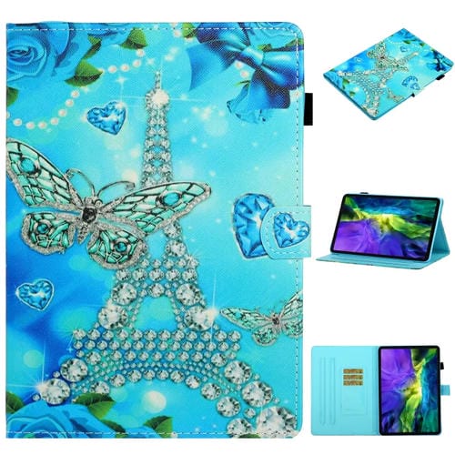 Funda de Cuero Inteligente para iPad Pro 11 (2024) con Dibujo a Color y Costuras (Torre Mariposa)
